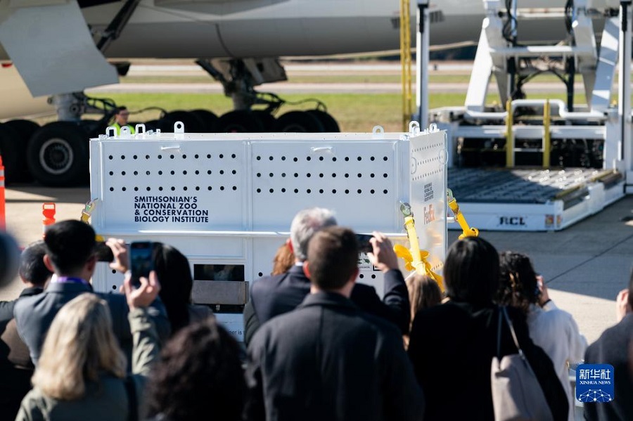 旅居美国的大熊猫“美香”“添添”和它们在华盛顿出生并长大的雄性幼崽“小奇迹”8日启程返回中国。