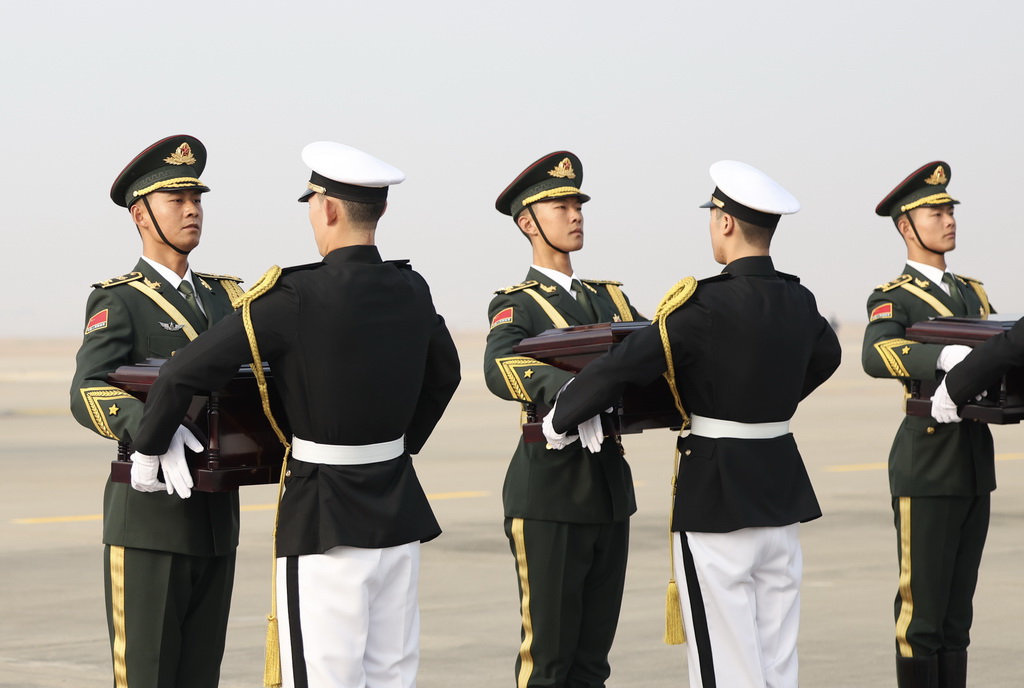 欧亚通讯社讯11月23日上午,中韩双方在韩国仁川国际机场共同举行在韩中国人民志愿军烈士遗骸交接仪式。中韩双方代表现场签署交接书,确认交接25位在韩中国人民志愿军烈士遗骸及相关遗物。