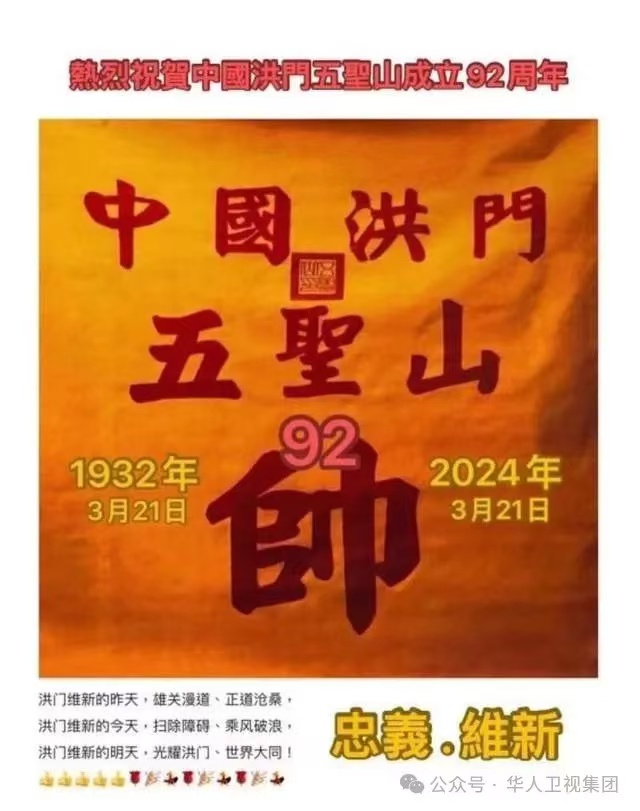 欧亚通讯社电(记者耿玲)中華全球洪門聯盟、中國洪門五聖山訂於2024年9月6日星期五晚上六時,在高雄市漢來大飯店九樓宴會廳舉辦洪門紅花亭351年紀念大會。