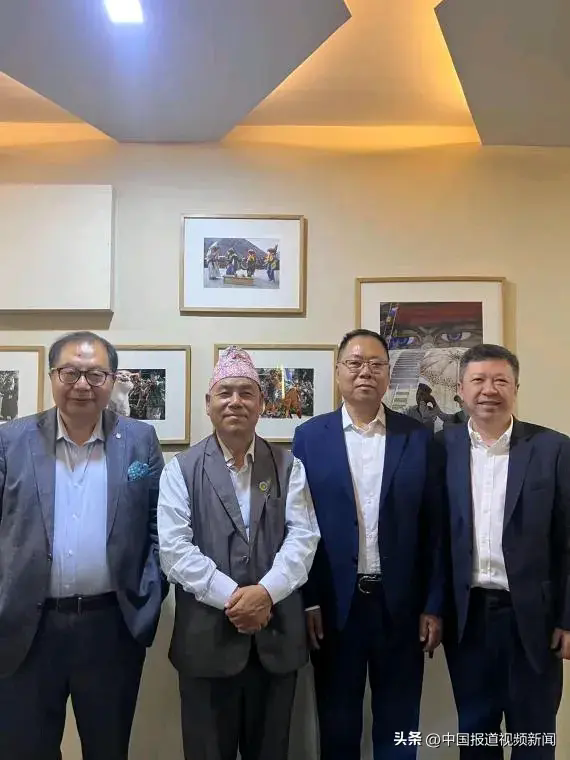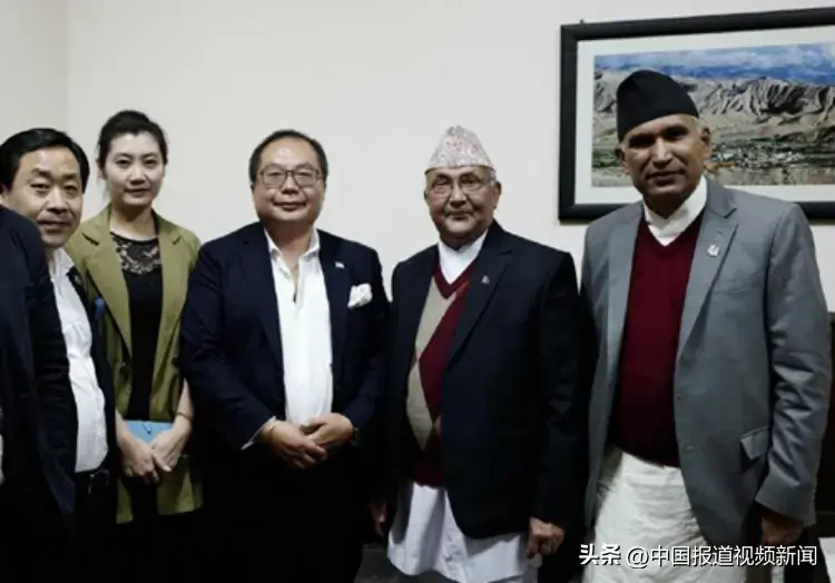尼泊尔时任总理夏尔马·奥利先生(右二)与肖武男主席(右三)和时任财政部长普拉萨德·宝德尔先生(右一)合影