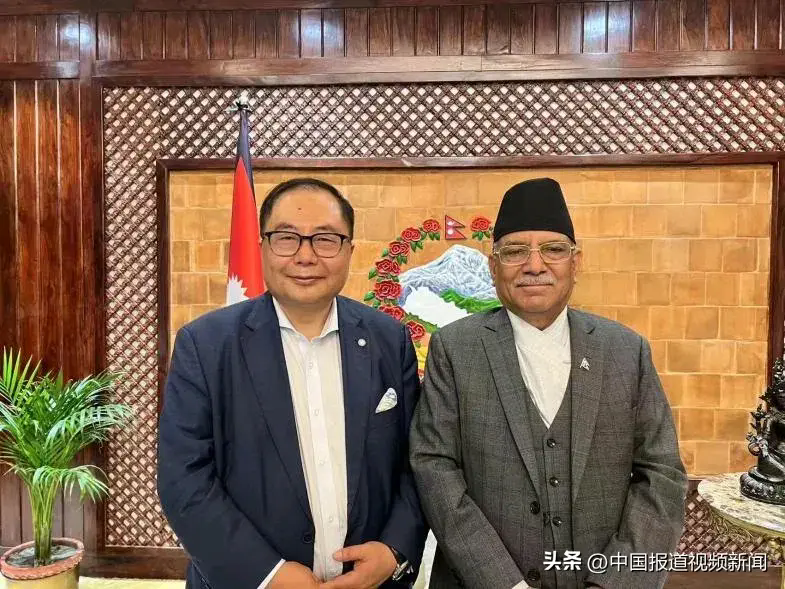 肖武男主席与尼泊尔时任总理普拉昌达(右)合影