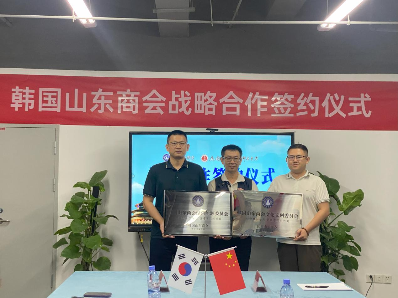 紧接着,韩国山东商会会长王旭蕾亲自为郭涛博士颁发了执行秘书长兼品牌战略委员长委任状,为李新军颁发了绿色能源委员会委员长的委任状,并进行了韩国山东商会北京办事处及品牌战略委员会、绿色能源委员会和文化文创委员会授牌,同时标志着这些委员会将正式启动并运作,为中韩合作贡献力量。