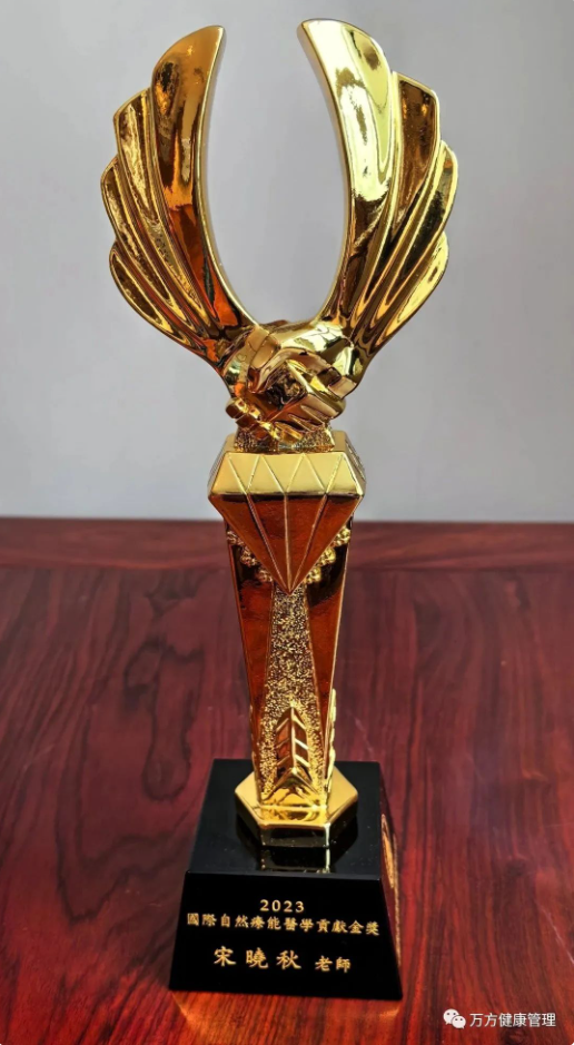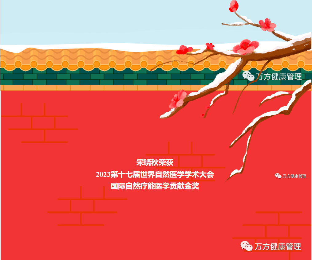 颐元医学创始人、颐元疗法首创者、全国百名非药物疗法优秀人物、中国民族医药协会非药物疗法工作委员会副会长、中国民族医药学会药食同源分会副会长、中国民族医药协会非药物疗法智库专家、中国民族医药学会药食同源分会颐元自然疗法研究中心主任、大连万方健康管理中心主任宋晓秋(万芳)应邀参加,并做了题为“颐元自然疗法:医食睡便多病同调重构健康——生命中不可或缺的非药而愈自然疗能”的学术发言,其论文经总会专家学术评审考核优异,核准编入大会论文集,并荣获“2023第十七届世界自然医学学术大会国际自然疗能医学贡献金奖”。