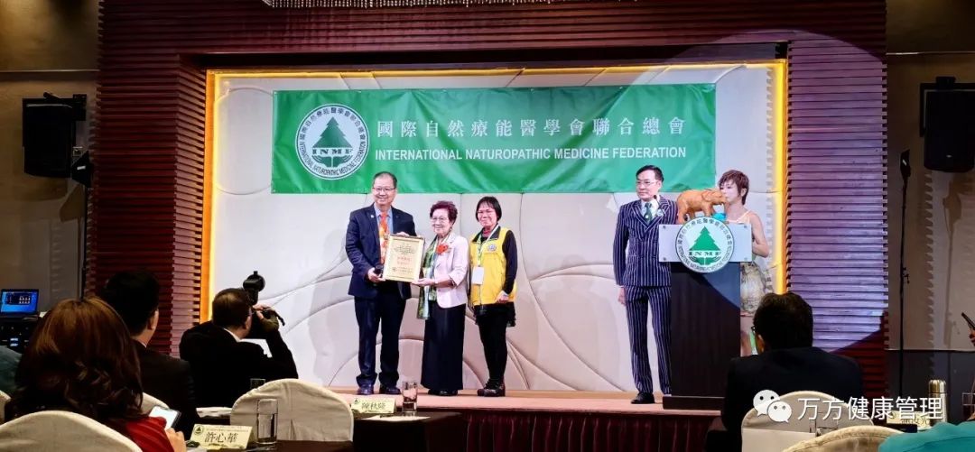 大会主席麦燕琼向世界国际健康管理学会理事长陈秋隆教授颁奖