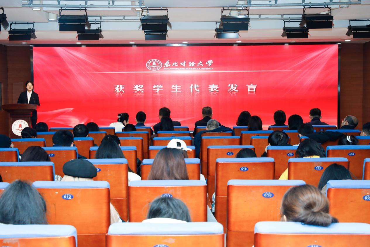 大连市青少年发展服务中心副主任、大连市青少年发展基金会理事长宋继君,大连市注册税务师协会副会长张绍虹,东北财经大学党委常委、副校长刘险峰,获奖学生代表分别发言。