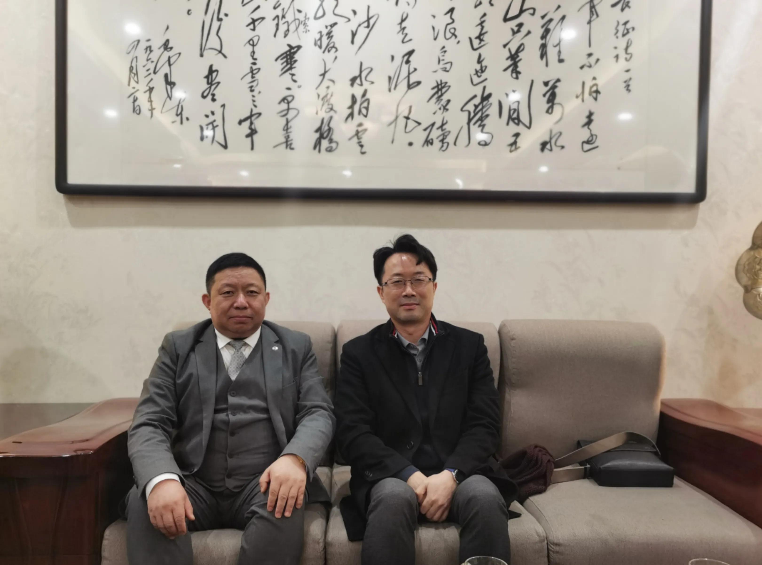 (左:欧亚通讯社李传军与右:北京韩国中小企业协会会长尹锡皓交流后合影)