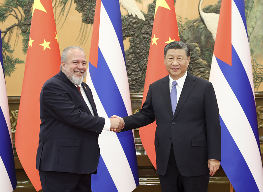 11月6日下午,国家主席习近平在北京人民大会堂会见古巴总理马雷罗。