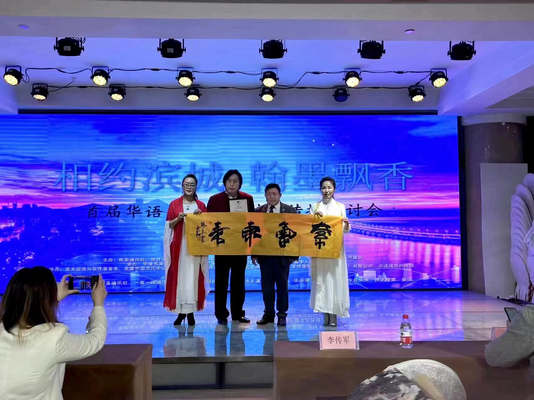 李传军主编(中右)为张碧竹老师(中左)颁发收藏证书