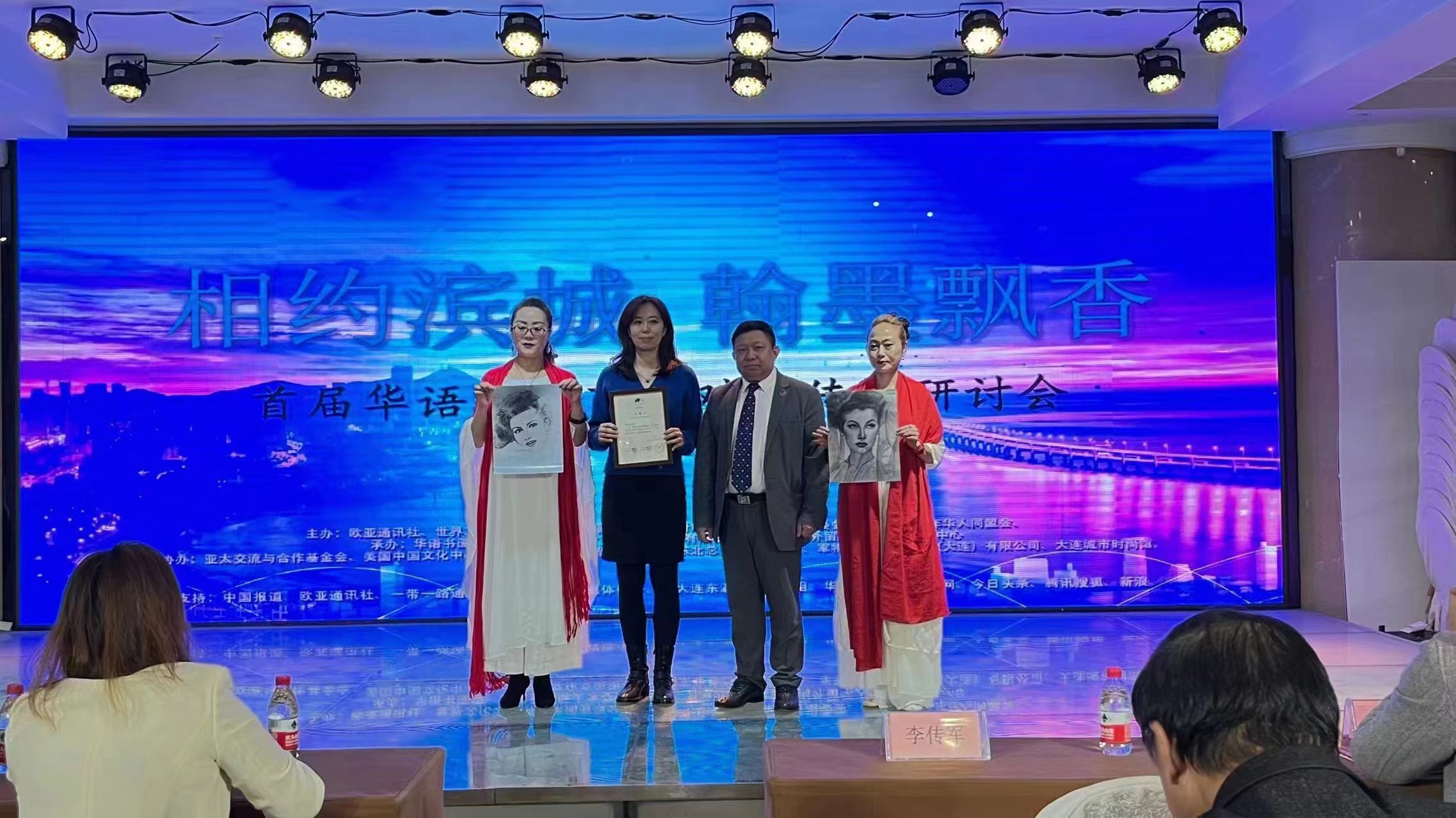 本次研讨会由欧亚通讯社、世界文化艺术博览集团有限公司、世界奇绝文化艺术博览会组委会、全球杰出青年华人同盟会主办。由华语书画院、东北亚国际人才交流(辽宁)有限公司、大连市海外留学人员创业投资中心承办。由亚太交流与合作基金会、美国中国文化中心、大连中日文化交流协会、美国东北总商会大连分会、军特国际保安服务(大连)有限公司、大连城市时尚馆协办。