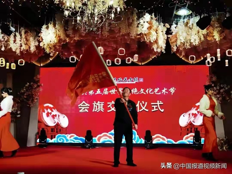 旗帜是信念、是方向、是引领,大力弘扬中华优秀传统文化、为世界大同贡献中国智慧。北旅田园党支部书记、黑风关古镇景区名誉董事长刘青成进行奇绝艺术文化会旗进行交接。