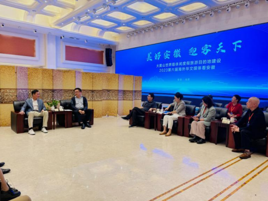 活动开始前,安徽省委宣传部副部长、省政府新闻办公室主任郑明武会见了来皖的海外华文媒体代表,并将安徽的经济发展态势、文旅融合和“大黄山”规划建设的推进建设情况,做了详细介绍。