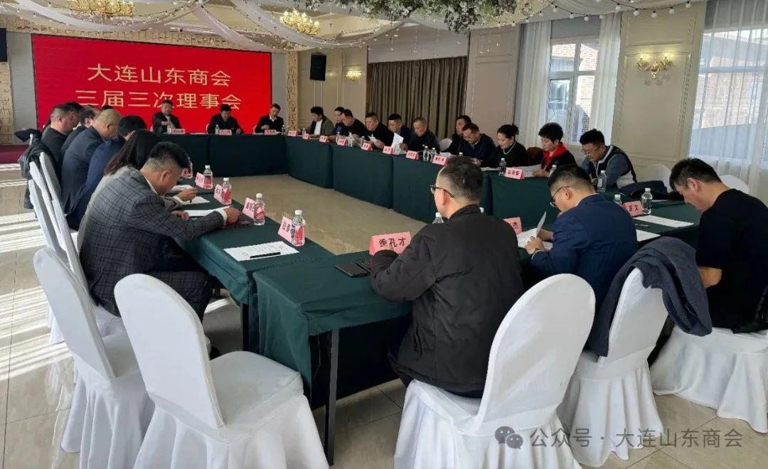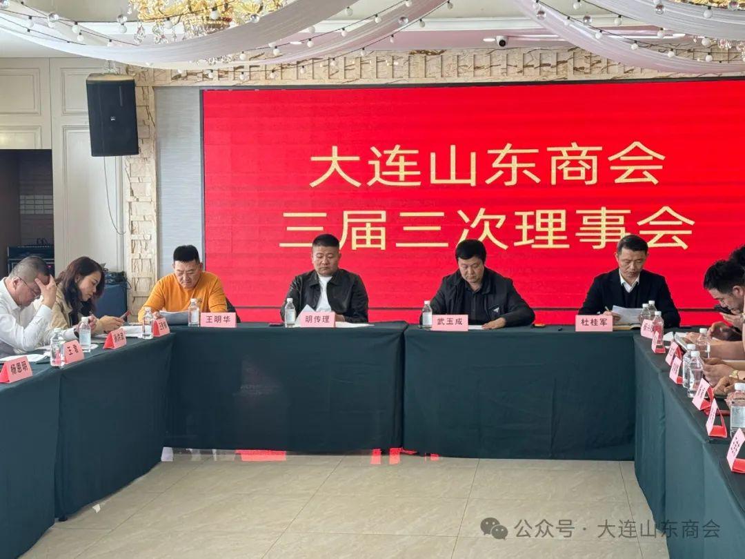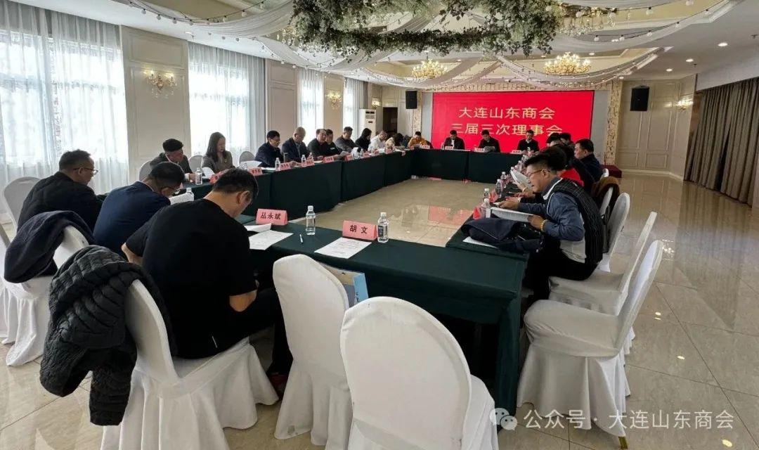 中国报道讯(耿玲报道)2024年3月29日,大连山东商会,在大连十洲云水酒店,召开商会三届三次理事会,参加本次会议的有商会会长武玉成,党支部书记明传理,常务副会长杜桂军、王明华、杨兴旺,副会长王秀梅、刘立军、陈超、孙洪波、刘树鹏,理事杨恩明、朱加华、冯会国、杨禄、赵伟、王吉东、袁东海、孙泽珠、张健、姜明杰、李芊萦、丛永斌、丛淑春、孔新华、汤占杰、季孔才,秘书长李宜明、副秘书长胡文等。会议共有四项内容:一是审议通过关于大连山东商会申请入会人员的建议;二是审议通过关于大连山东商会申请商会副会长人员的建议;三是审议通过关于大连山东商会2024年工作计划的建议;四是新晋副会长授牌。会议由秘书长李宜明主持。