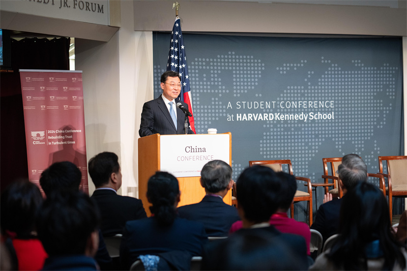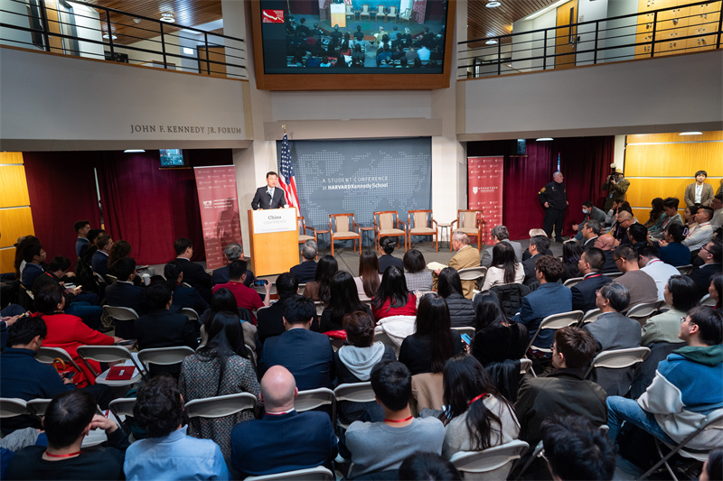 2024年4月20日,中国驻美国大使谢锋应邀出席哈佛肯尼迪中国论坛开幕式并发表了题为《中国式现代化、人类命运共同体和中美关系》的演讲,强调面对动荡不安的世界,中国的选择是对内推进中国式现代化,对外推动构建人类命运共同体。希望美方同中方相向而行,按照相互尊重、和平共处、合作共赢原则,探索中美新时期正确相处之道。