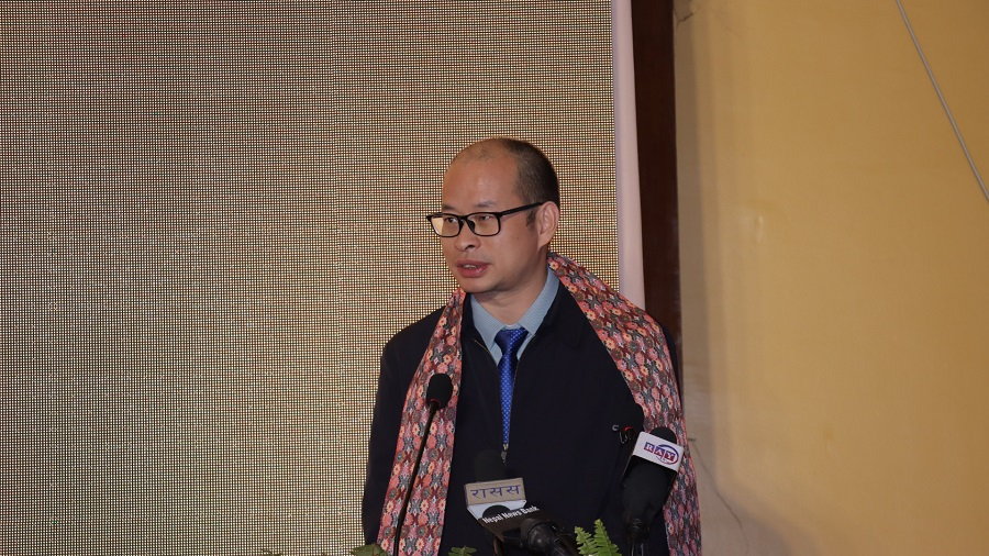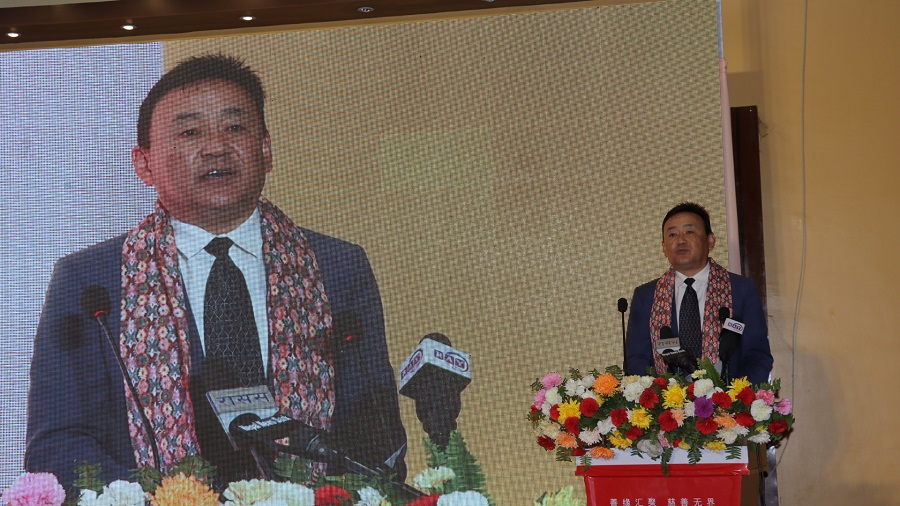 中国驻尼泊尔使馆参赞次旺与参会者合影