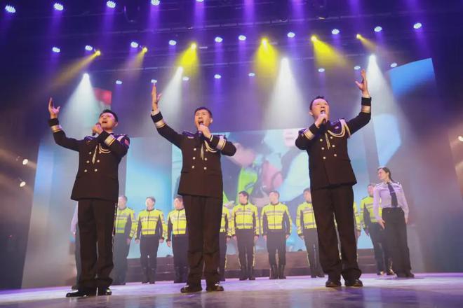 在领唱大合唱《奋进新时代》中整个活动圆满落下帷幕。激昂的旋律如滚滚浪潮,澎湃着全警乘势勇为的壮志豪情,淋漓尽致地展现出他们在新时代征程中,接续奋斗、勇毅前行的坚定信念。