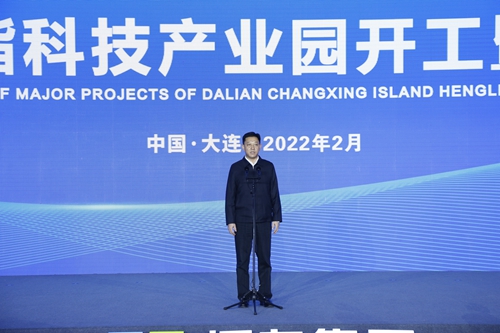 辽宁省委副书记、大连市委书记胡玉亭宣布“大连长兴岛恒力聚酯科技产业园项目”开工,大连市委副书记、市长陈绍旺主持仪式。市领导方铁林、尹卫军、吴开华、刘东立、郭云峰、衣庆焘出席仪式。恒力集团董事长、总裁陈建华,长兴岛经济技术开发区党工委书记、管委会主任杨广志分别致辞。