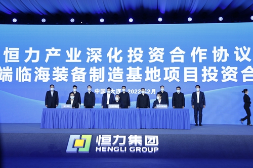 仪式上,大连市政府、长兴岛经济技术开发区管委会、恒力集团三方签订产业深化投资合作协议;长兴岛经济技术开发区管委会与恒力集团签订恒力高端临海装备制造基地项目投资合作协议。根据协议,恒力集团拟新增投资400亿元建设160万吨/年丙烯腈、苯乙烯、聚醚多元醇等精细化工项目;新增投资100亿元建设重工、高端装备为代表的现代化绿色制造基地。同时,长兴岛经济技术开发区管委会还分别与浙江运达风电股份有限公司、国际资源有限公司和中国科学院大连化学物理研究所、新加坡联合实业集团和大连理工大学签署投资101亿元的“新能源装备综合产业园项目投资协议”、投资100亿元的“储能新材料基地项目合作协议”、投资150亿元的“100万吨二氧化碳综合利用及深加工高端材料项目合作协议”。5大项目涉及高端装备制造、新材料、新能源等领域,总投资851亿元,建成达产后可实现产值1674亿元,将为长兴岛走双碳引领、绿色发展、结构优化的高质量发展之路奠定重要基础。
