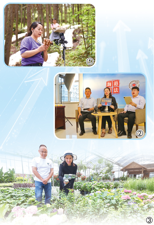 图③:浙江金华市金东区澧浦苗木城的苗圃里,新农人在直播销售花卉盆景。